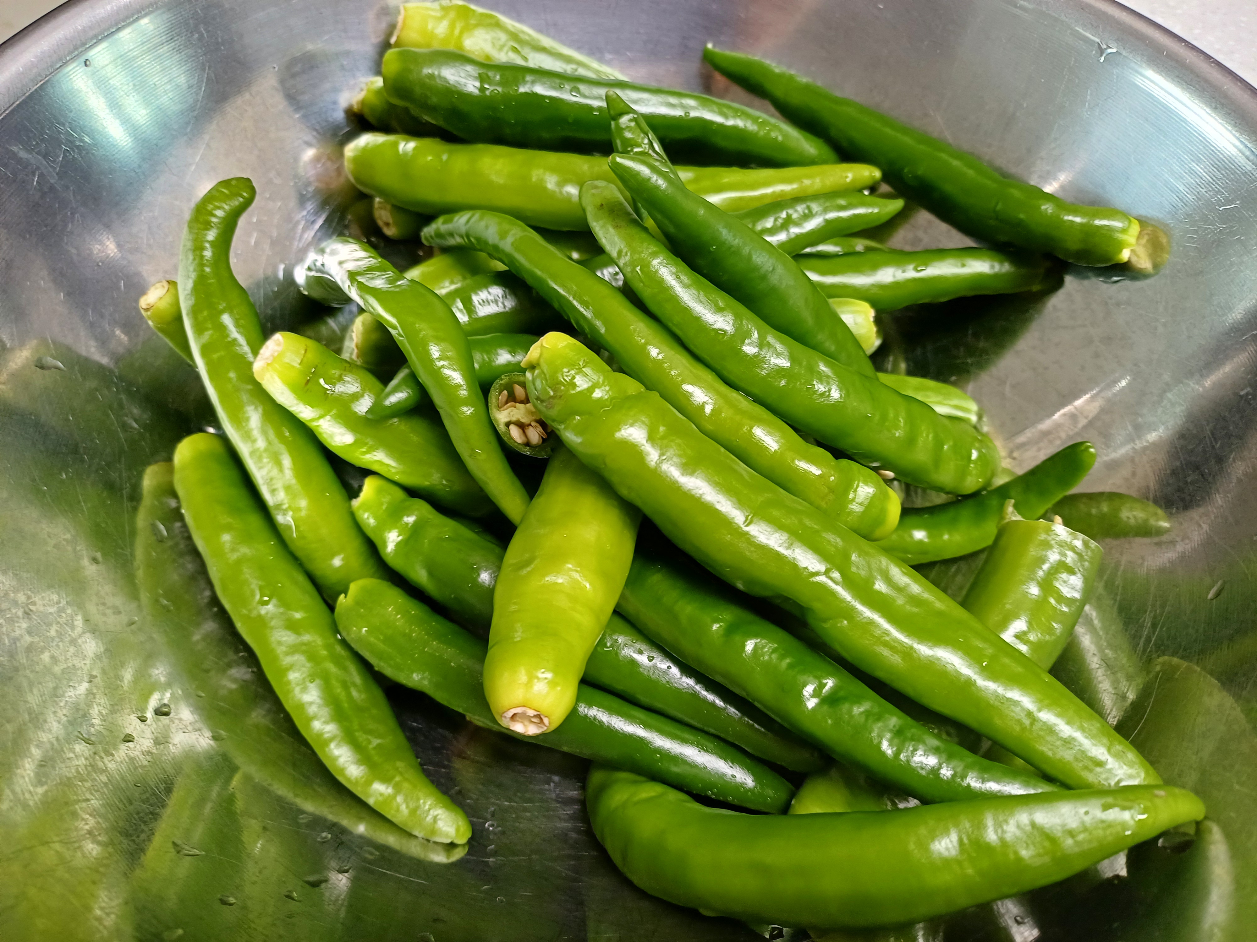 1. 고추는 꼭지를 제거하고 깨끗이 씻어 물기를 제거합니다.