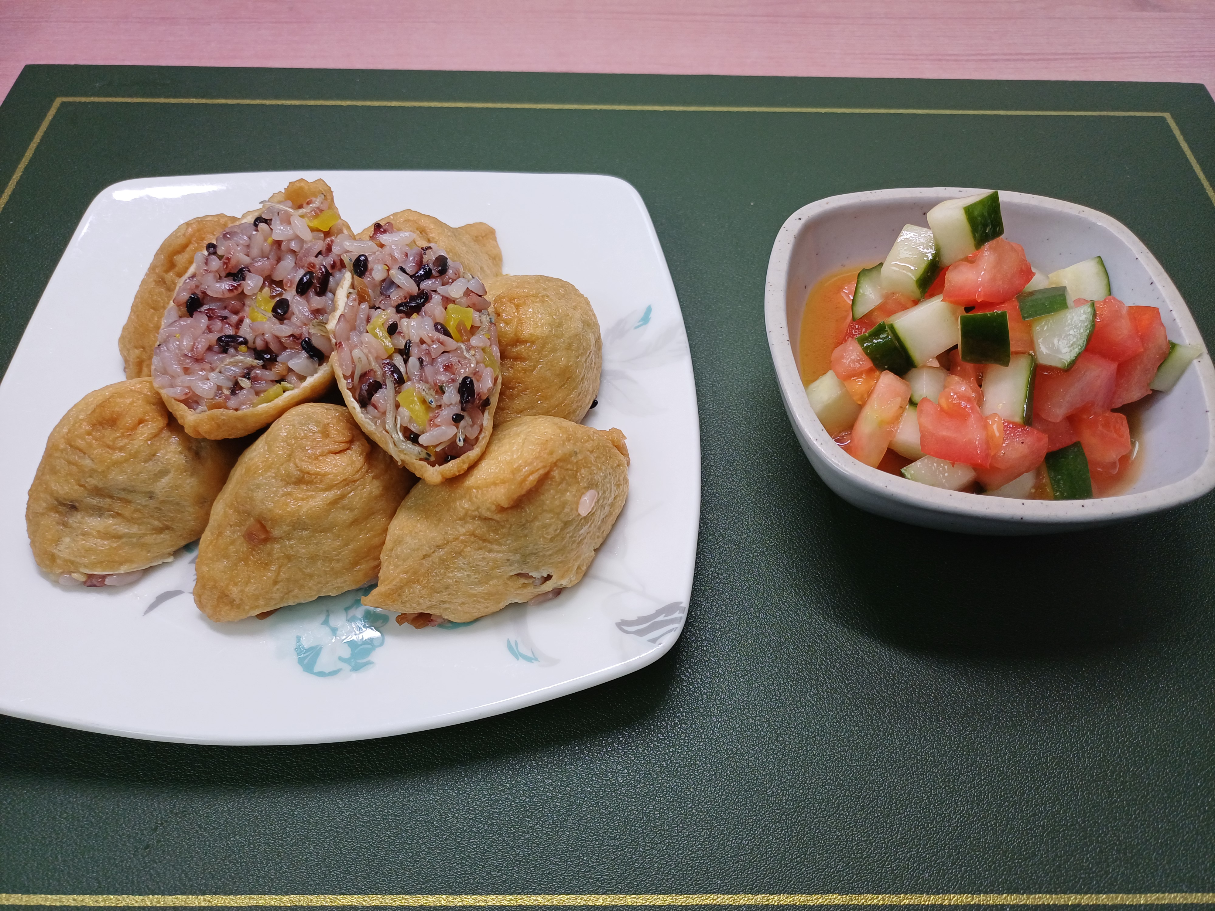 스케쥴 근무로 한 달 휴무 계획을 정하고 근무하지만 갑자기 일이 생기면 변동할 수 밖에 없습니다. 바뀐 근무 스케쥴에 마트 장을 보지 못해 냉장고 재료로 간단하게 점심 한끼를 해 먹었습니다. 유부초밥과 토마토오이샐러드 입니다.