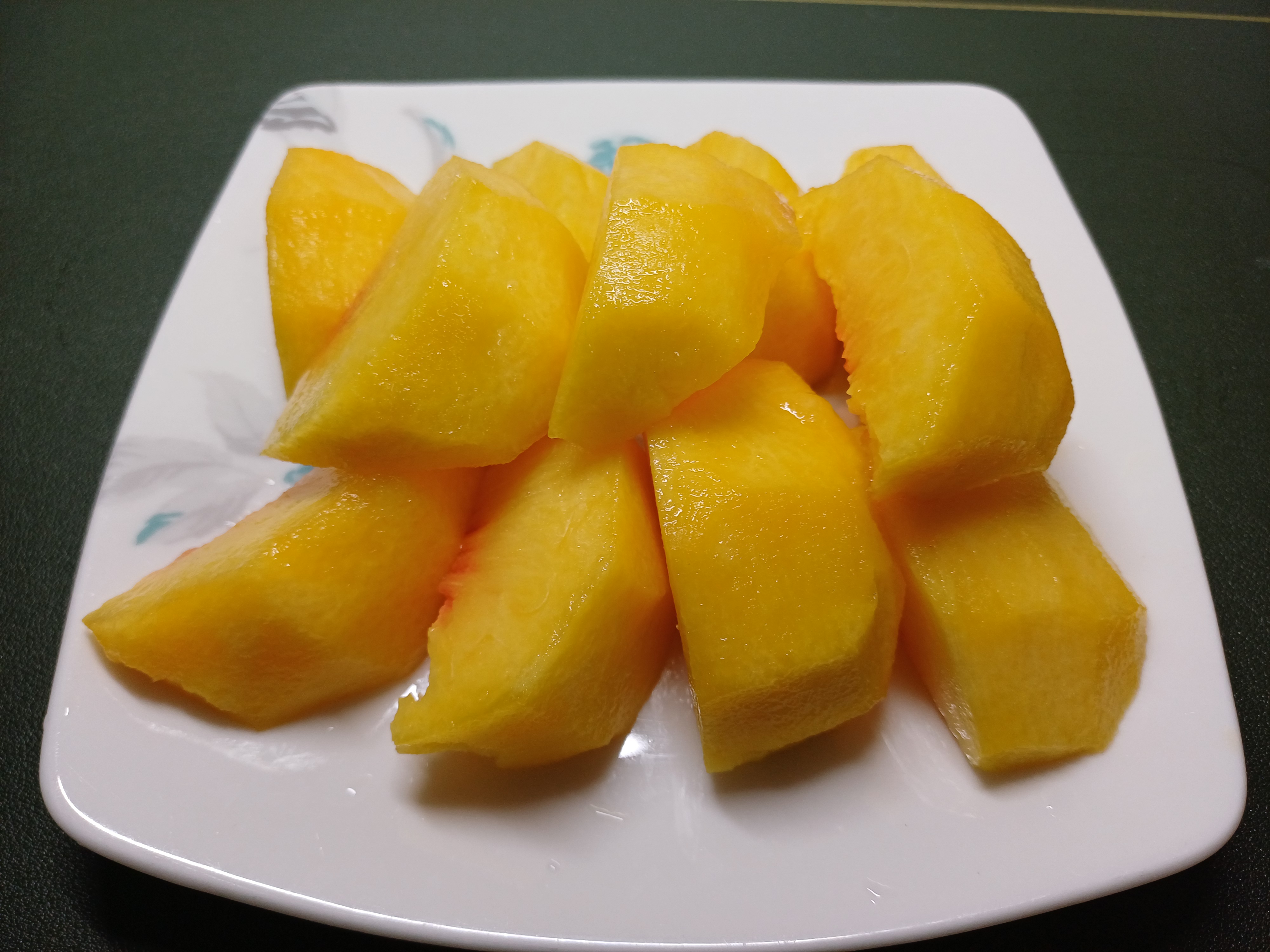 사진상으로 색이 실제보다 파랗게 나오기는 했지만 일반 황도보다 주황빛이 적기는 했습니다. 무르기 전에 보내시려고 익기도 전에 땄나 싶어 며칠 실온에서 후숙을 할까 했는데 예상외로 달고 맛있었습니다. 지인들과 나눠 먹고 남는 건 설탕에 조려서 보관해야 할 것 같습니다.