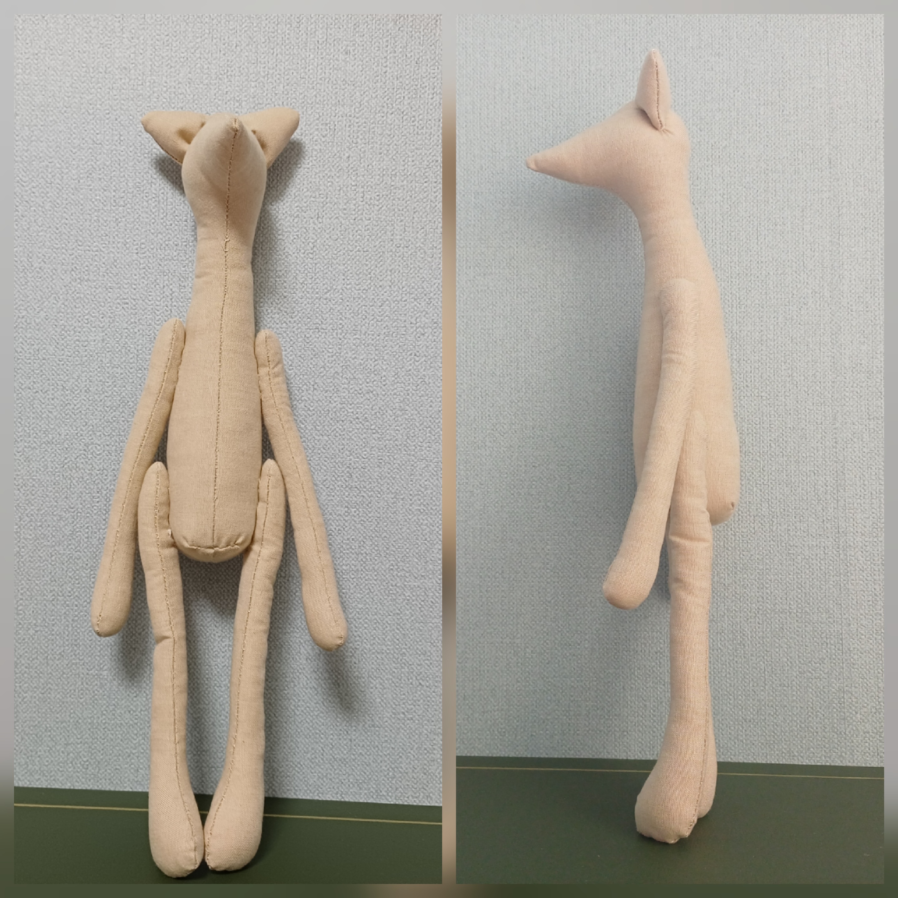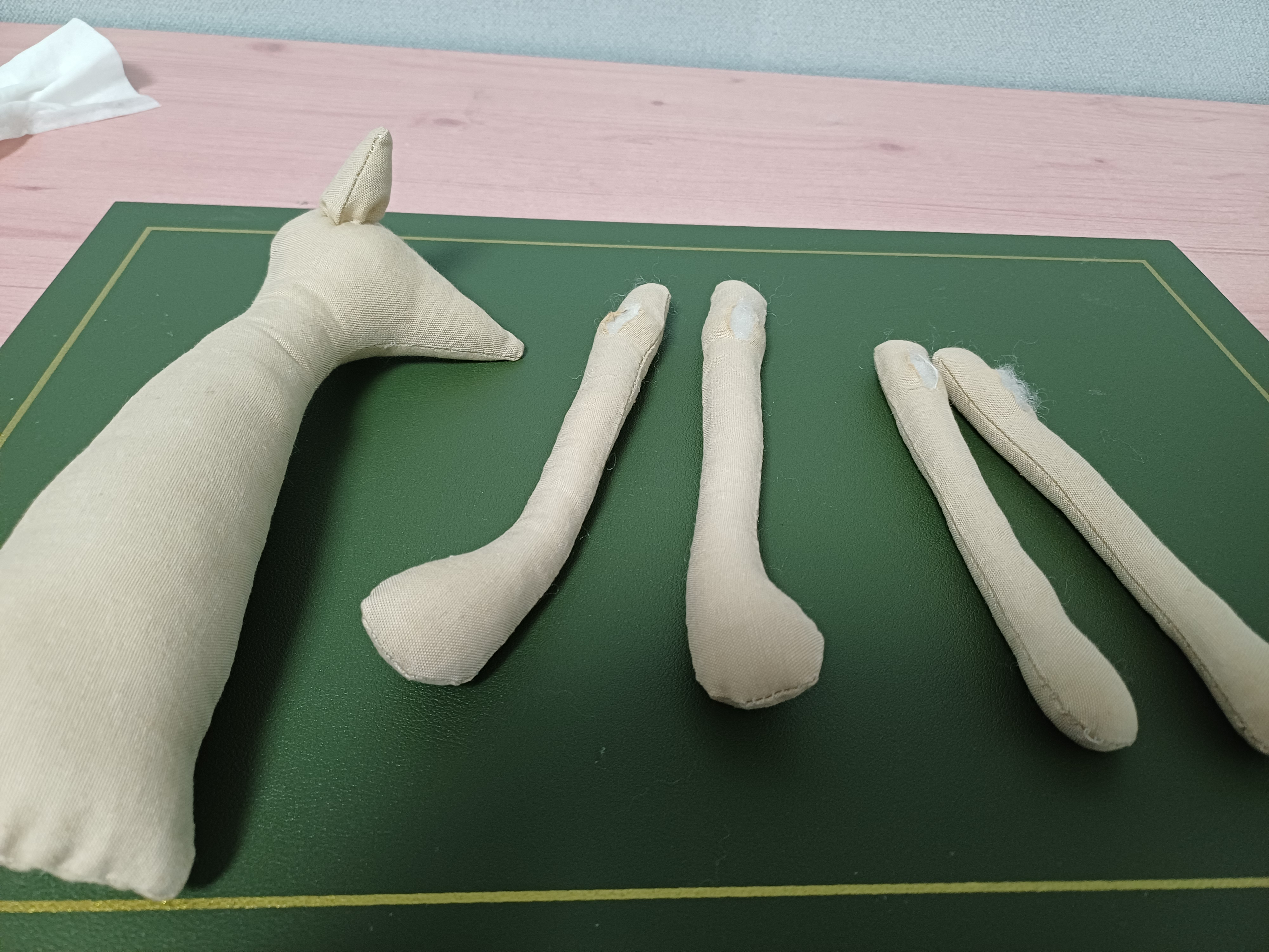 4. 팔 다리는 가늘고 긴데 비해 창구멍이 작아서 솜을 넣는데 어려움이 많았다.