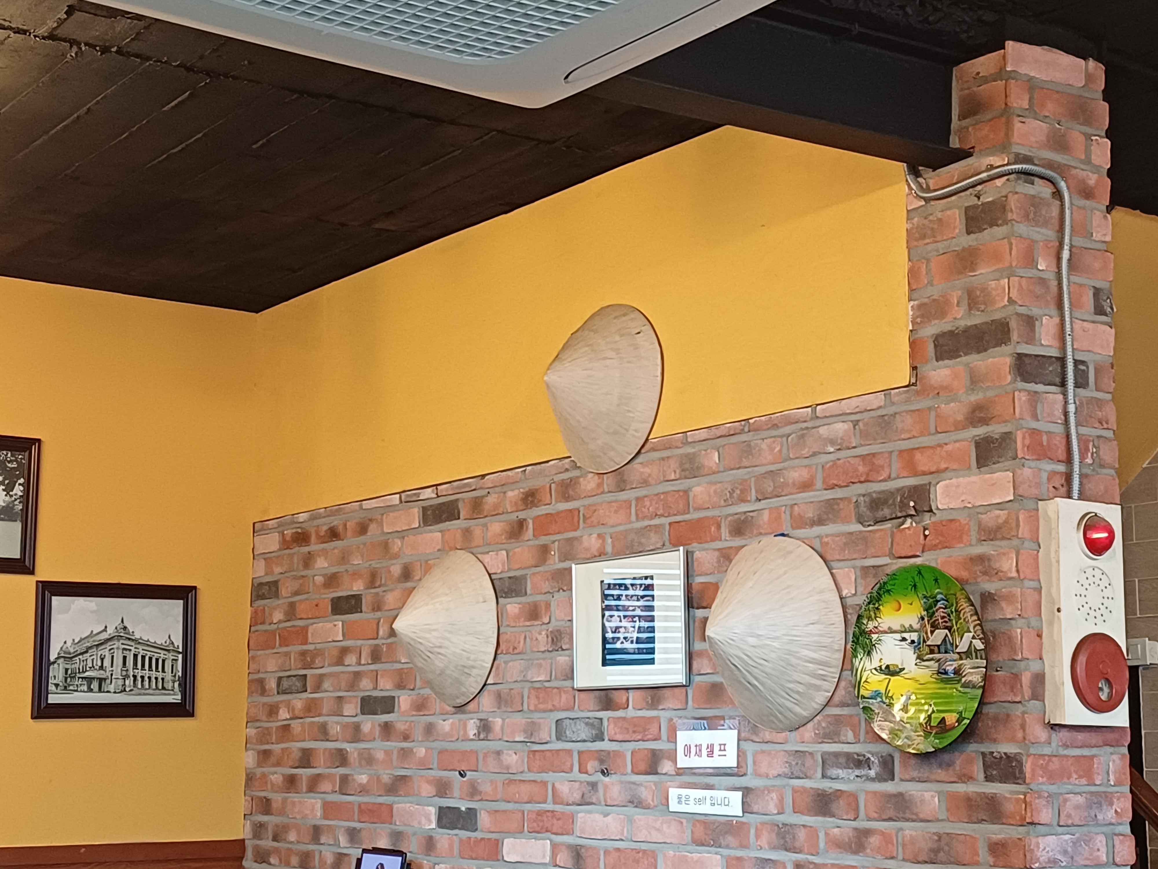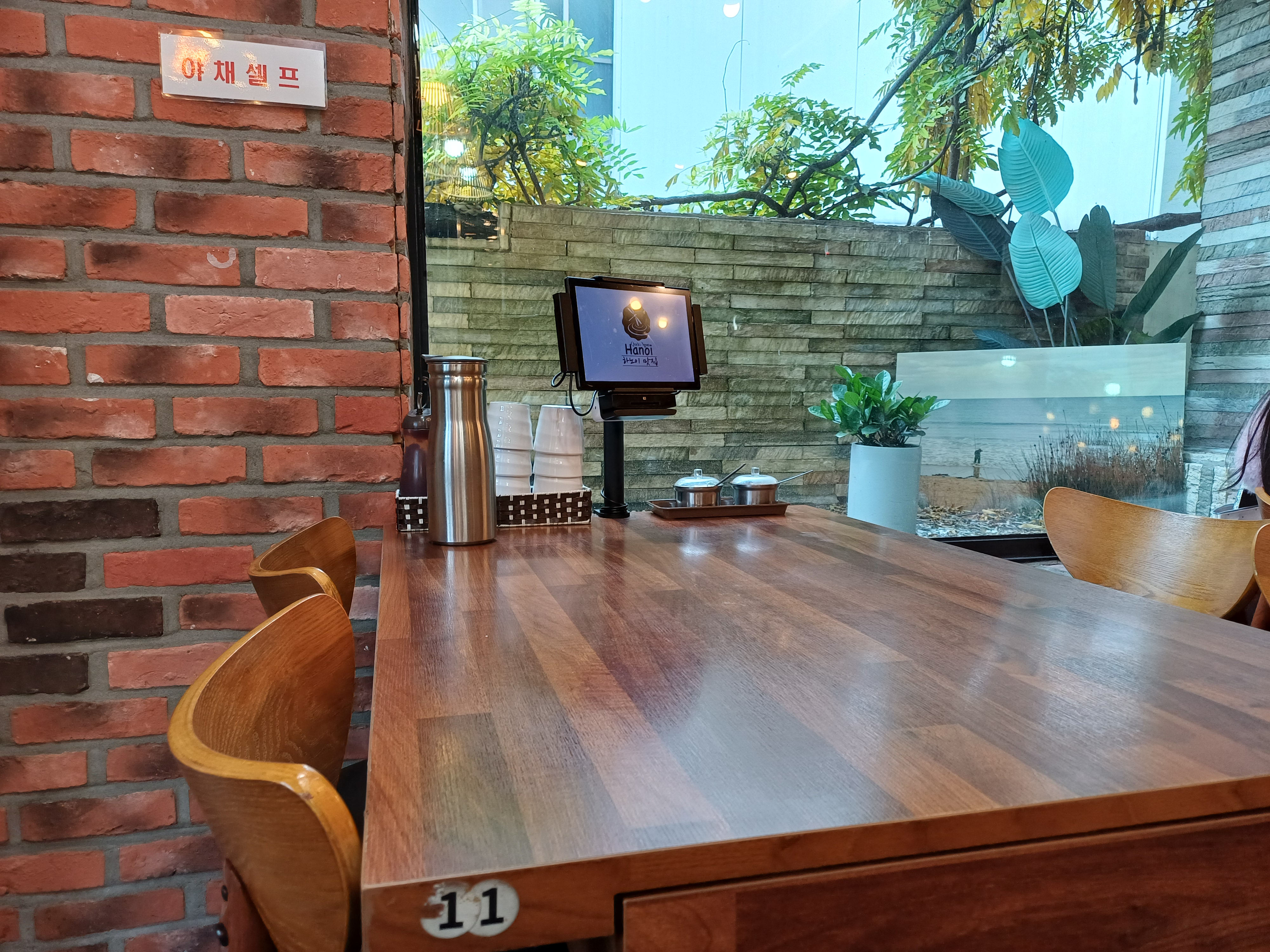 저희가 방문한 날은 토요일 이른 점심이었는데, 평일이 아니어서 인지 여유있게 식사할 수 있었습니다. 주택가 골목에 위치해 있었고, 가정집을 개조한 듯한 모습이었습니다. 테이블에서 키오스크로 주문을 하는 시스템이었고, 야채는 셀프로 더 가져다 먹을 수 있었습니다. 베트남 전통모자가 장식되어 있어 베트남 식당이구나 하는 생각이 들게 해주네요. 직원분도 베트남 분이신것 같았습니다.
