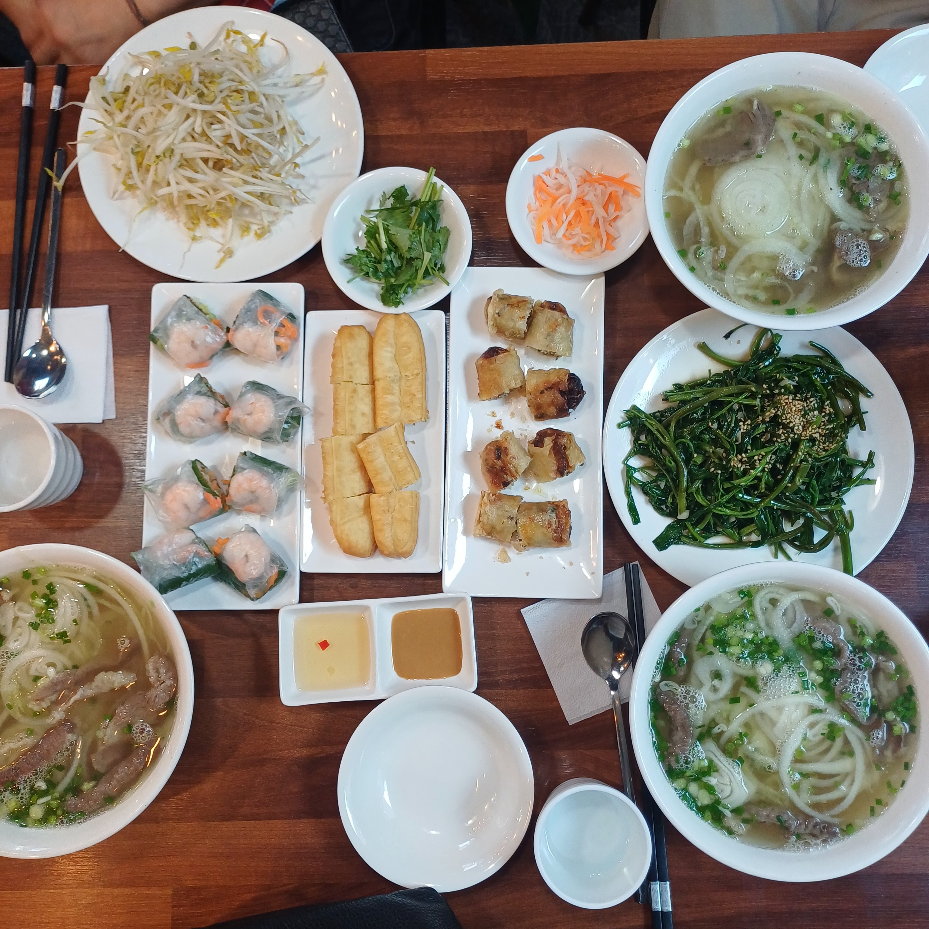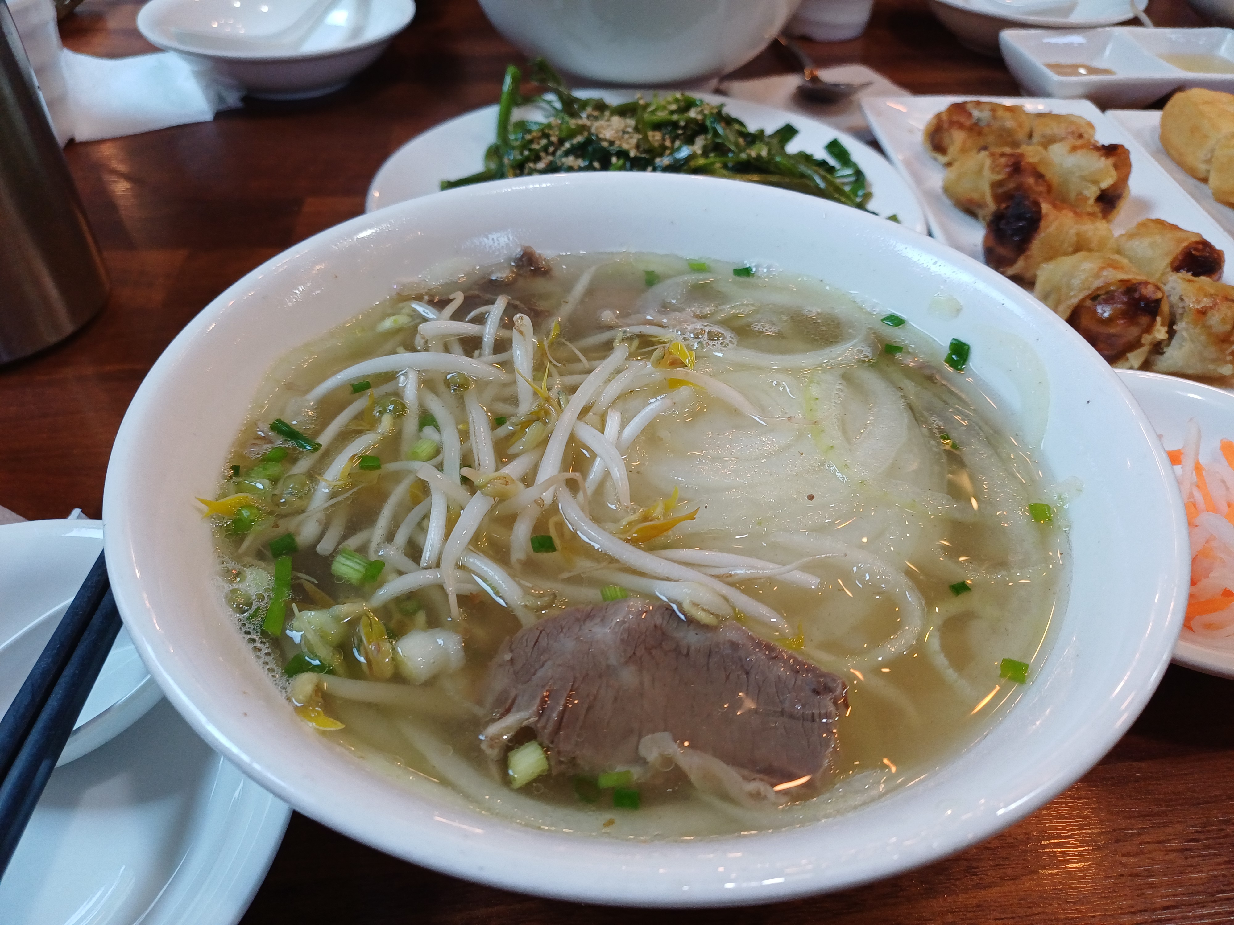 쌀국수와 두 종류의 롤, 모닝글로리, 꽈배기 등을 주문했는데, 나중에 서비스 까지 주셔서 정말 배부르게 먹었습니다.