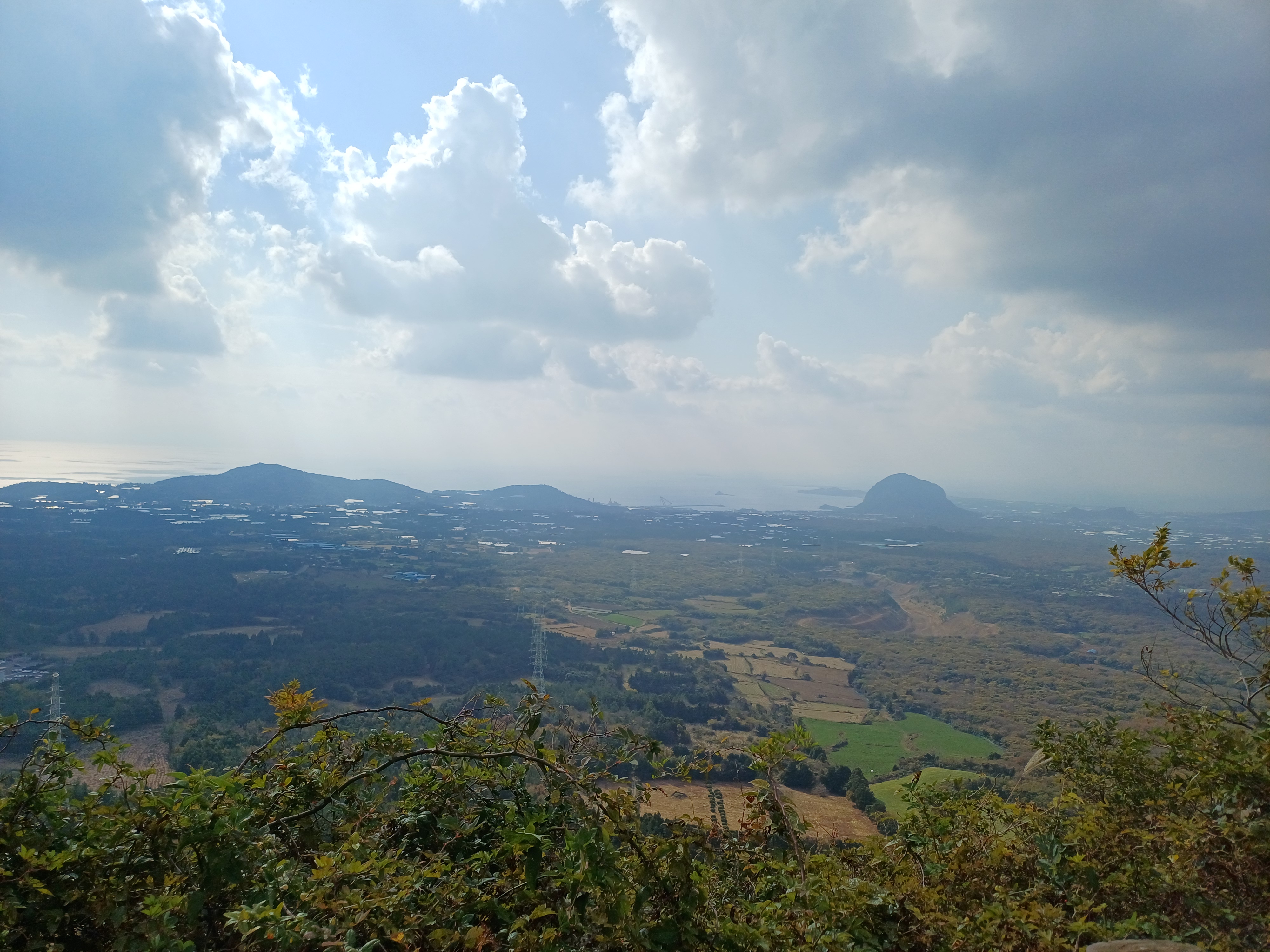 정상에서는 한라산 능선도 보이고 산방산이 있는 대정쪽 바다도 보였는데 공기가 맑지 않아 아쉽긴 하지만, 탁 트인 전망이 시원했습니다.