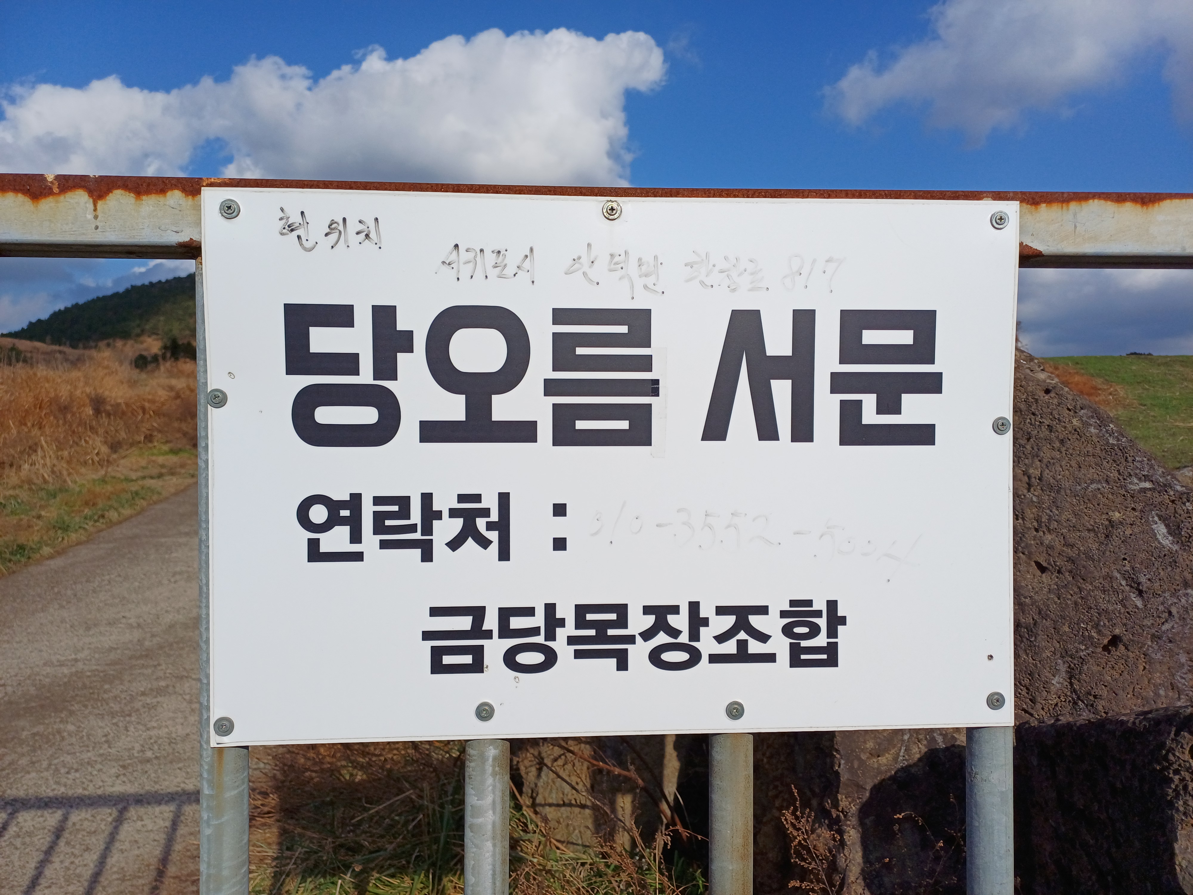 처음에 동광육거리 쪽에서 이동했는데, 금당목장 팻말이 보이지 않아 지나쳤다가, 다시 돌아오며 입구를 찾을 수 있었습니다.