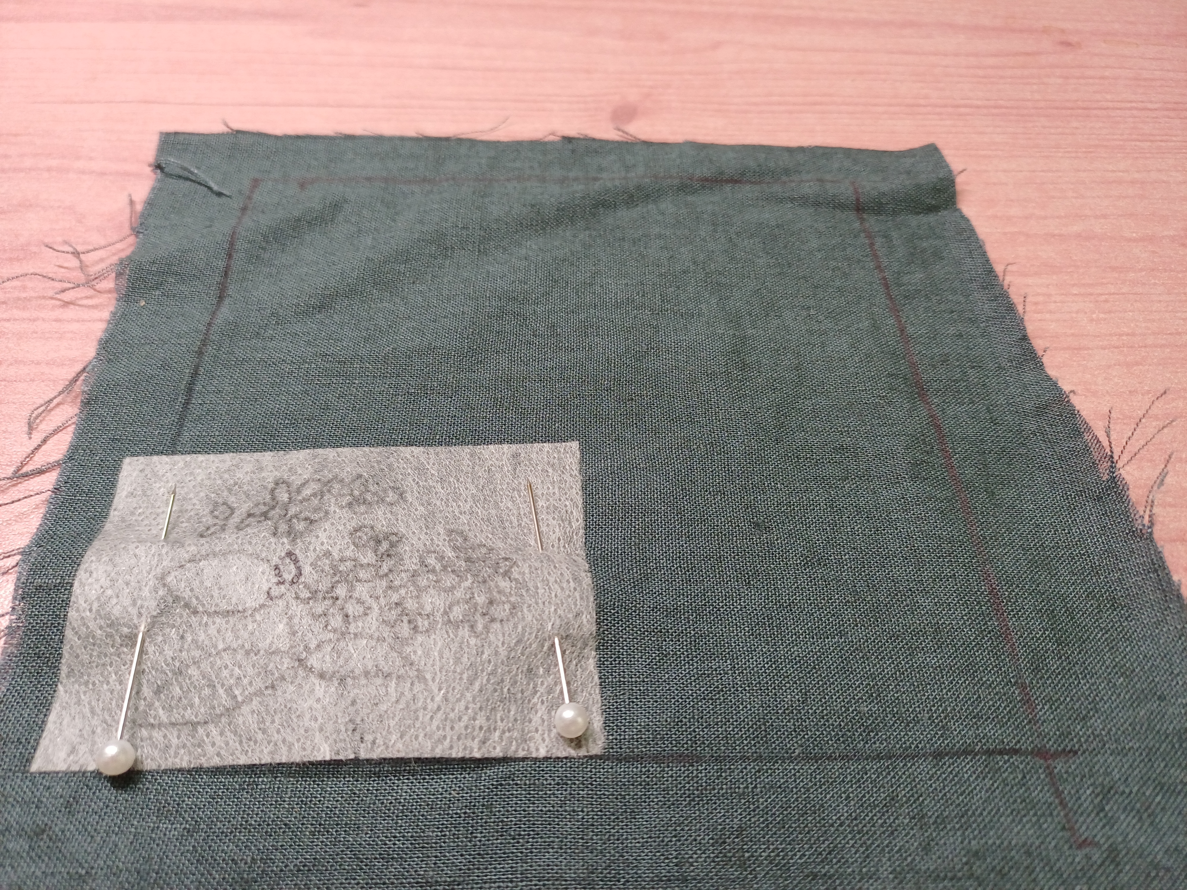 4. 원하는 위치에 도안이 그려진 자수심지를 고정시킵니다.
