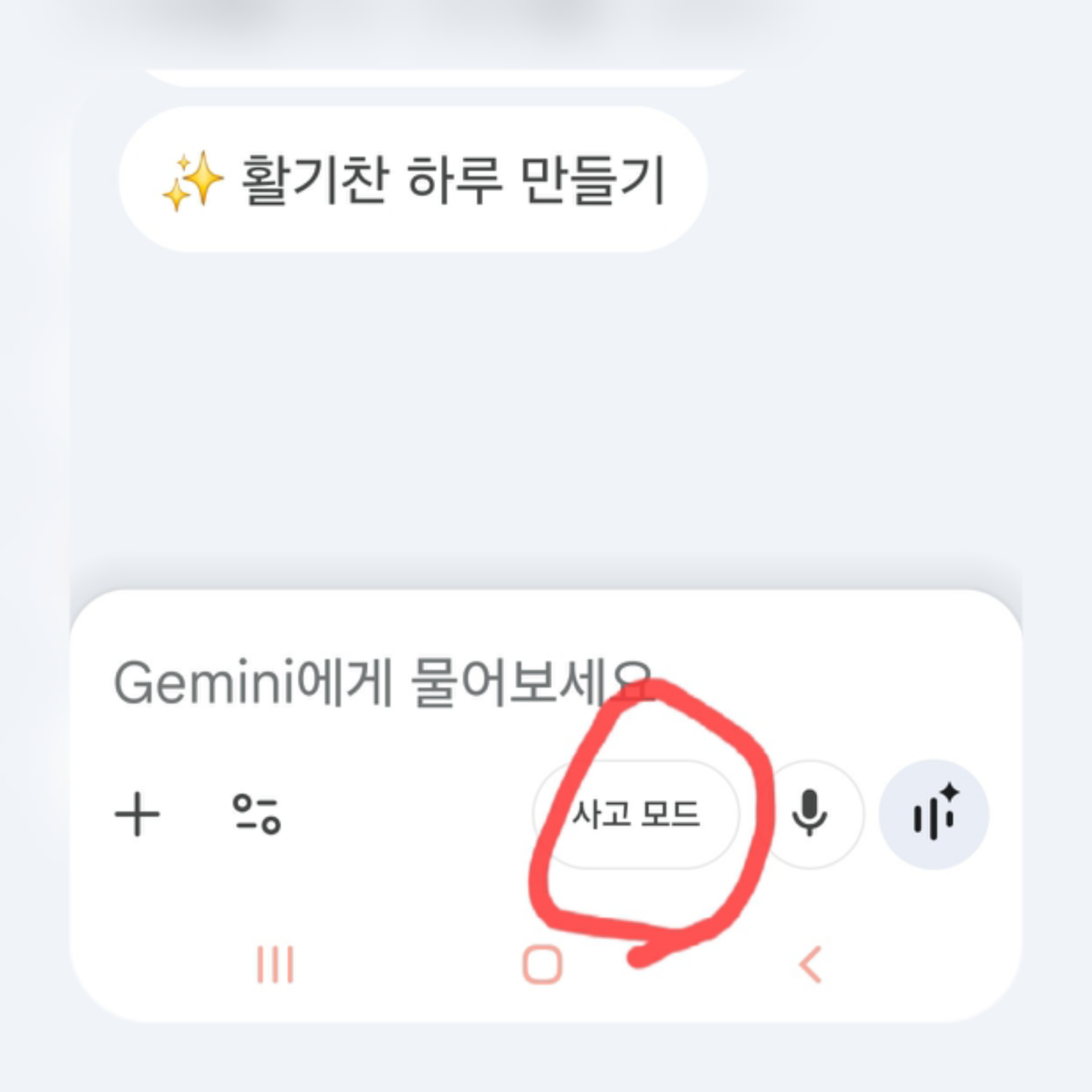 2. 원하는 내용을 입력하는 곳 (Gemini 에게 물어보세요) 아래가 사고모드 인지 확인합니다.