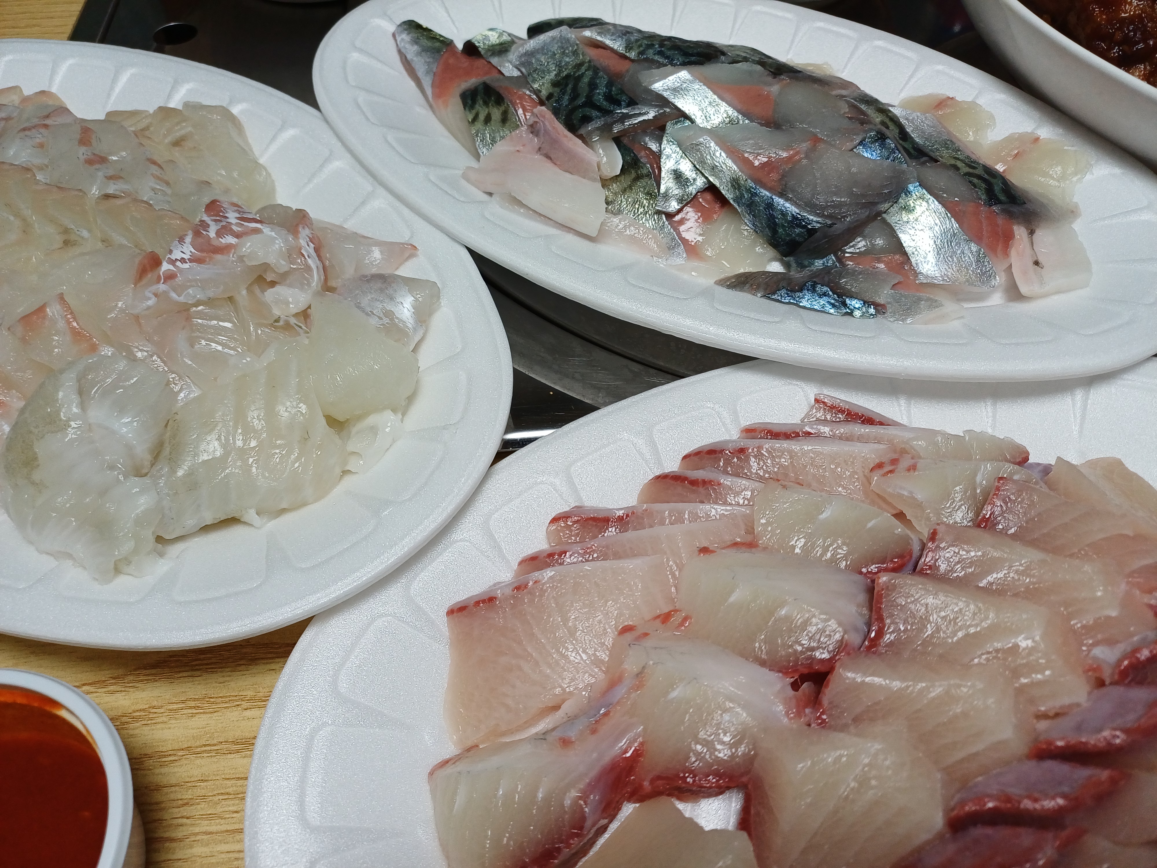 미리 준비해 둔 회가 아니라서 조금 두툼하게 썰어달라고 부탁을 할 수 있어 좋았고, 가성비 측면에서는 월등하게 좋다는 생각이 들었습니다. 지난 가을에 다른 곳에서 포장했던 것과 가격은 비슷한데 양은 거의 두배정도 되는 것 같았습니다.