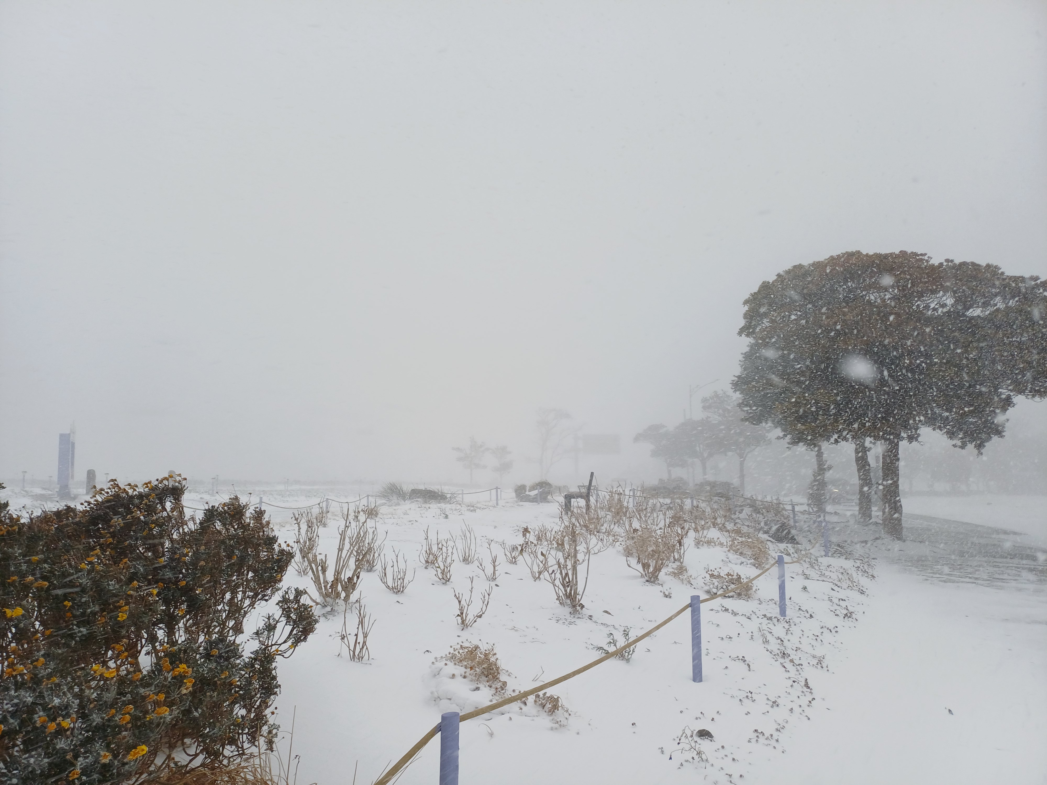 한치 앞도 분간하기 어렵게 내리치던 눈보라는 한낮에 해가 나면서 잦아들었고, 만 하루가 지나기 전에 눈발의 흔적은 모두 사라져 버렸습니다. 기온상으로는 겨울이 없는 제주도 라고 하지만 중산간 지역에 바람이 불 때는 살을 에이는 것 같은 추위를 실감하게 됩니다. 통계는 통계일 뿐이고 수치는 수치일 뿐, 제주도민이 체감하고 느끼는 겨울, 엄청 춥습니다.
