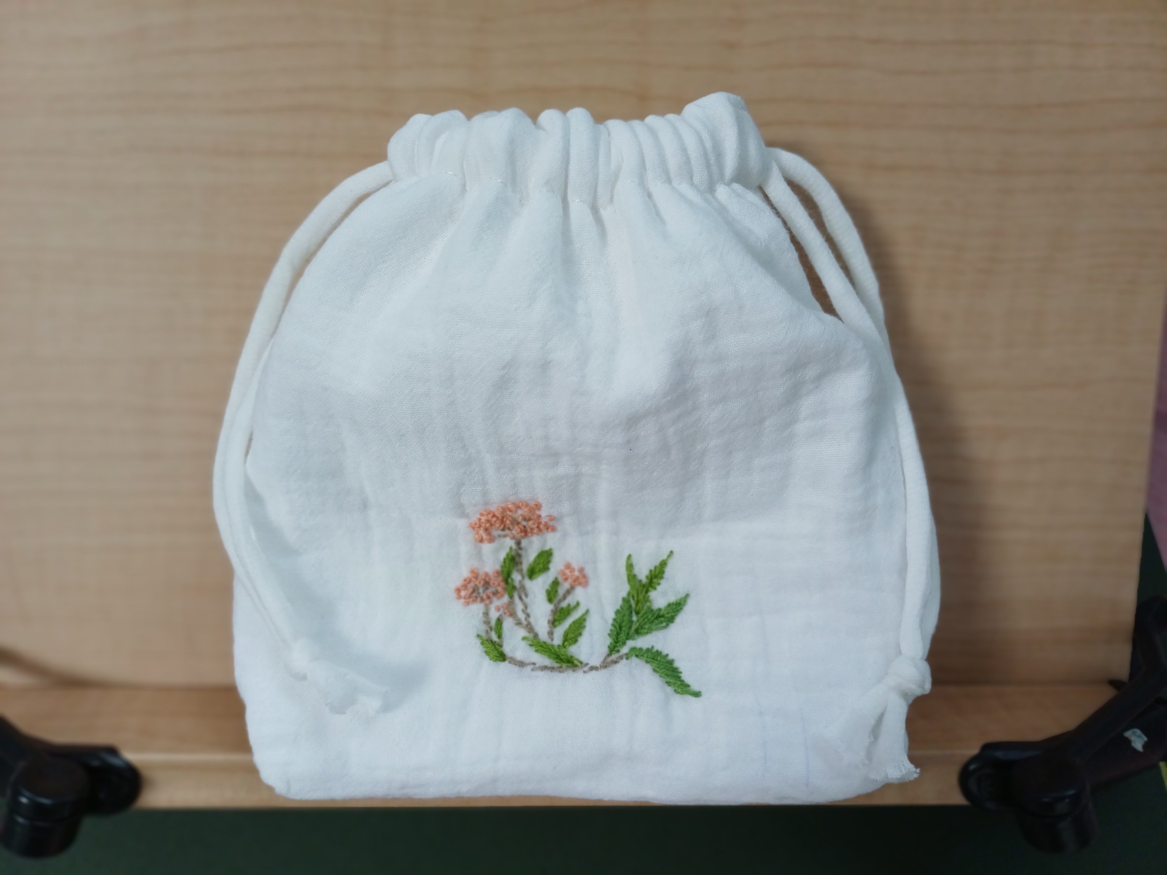 손수건 2장을 만들고도 거즈면이 남았습니다. 남은 거즈면이 신경 쓰여 고민을 하다가 프랑스 자수를 수 놓은 파우치를 만들기로 했습니다.