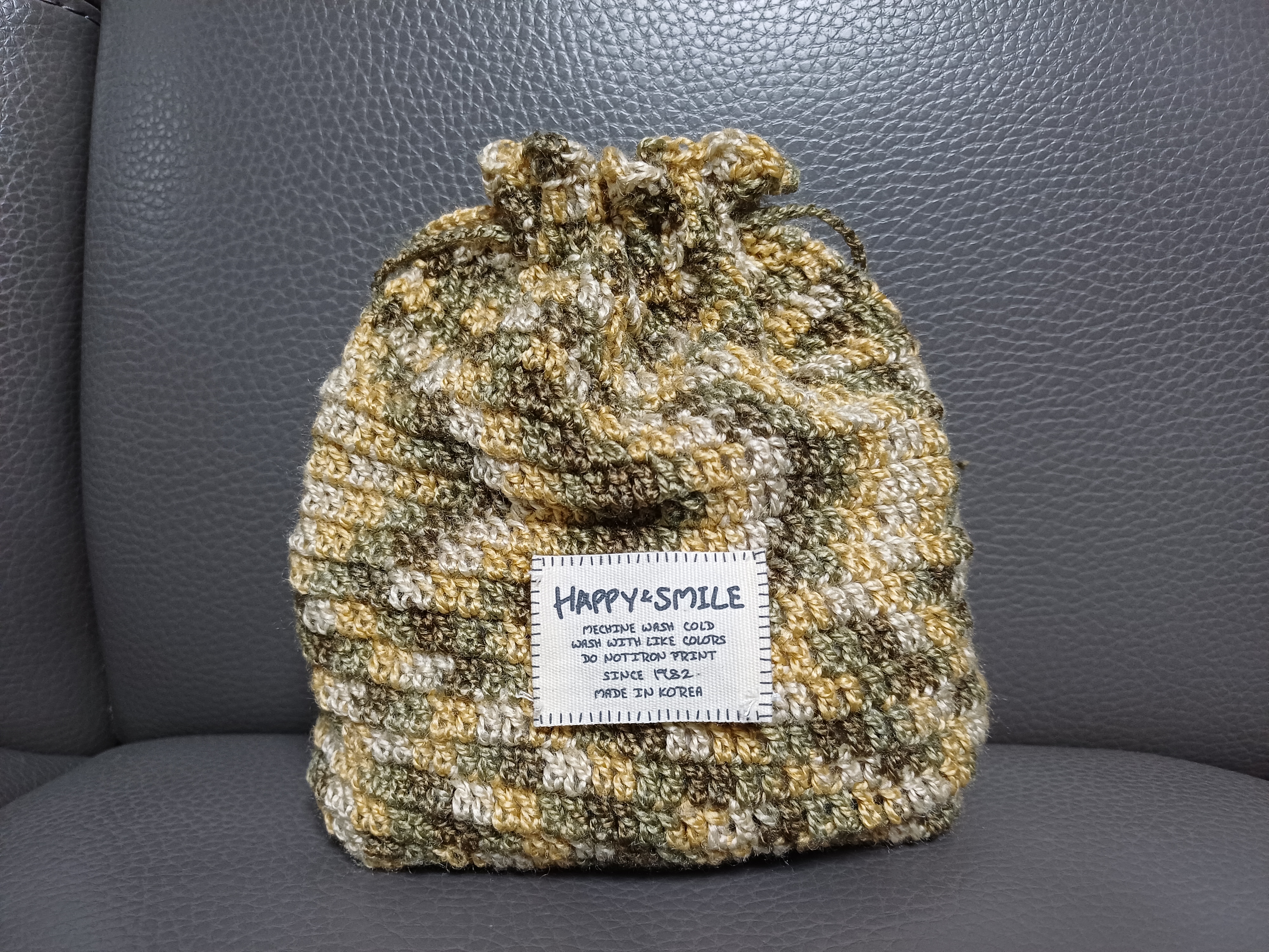 바닥은 짧은뜨기로 직사각형 모양을 만들고, 옆면은 실이 여러색이 섞여 단순하게 한길길뜨기로만 뜨고 마무리를 5코 간격으로 모양을 내주었습니다.