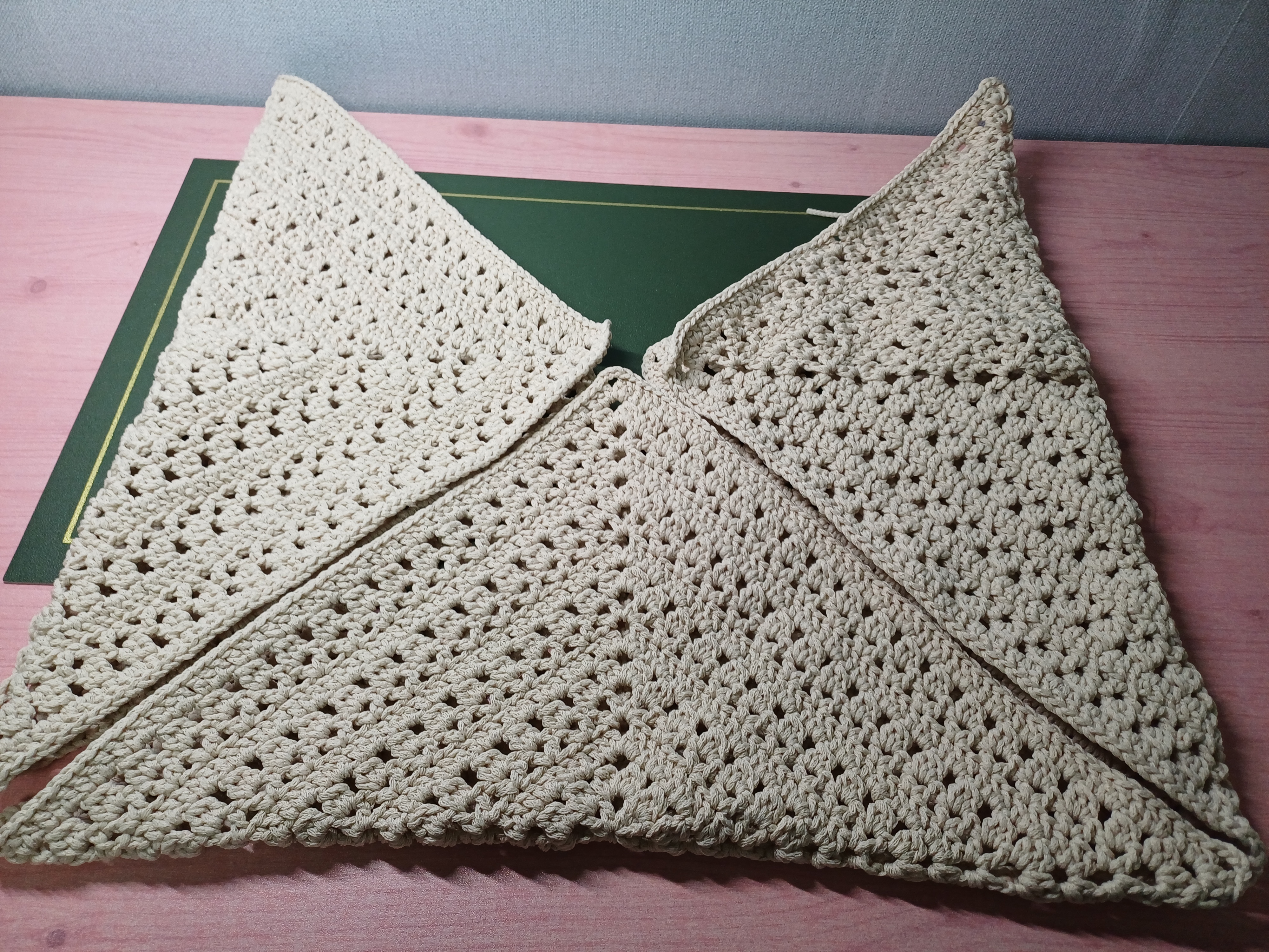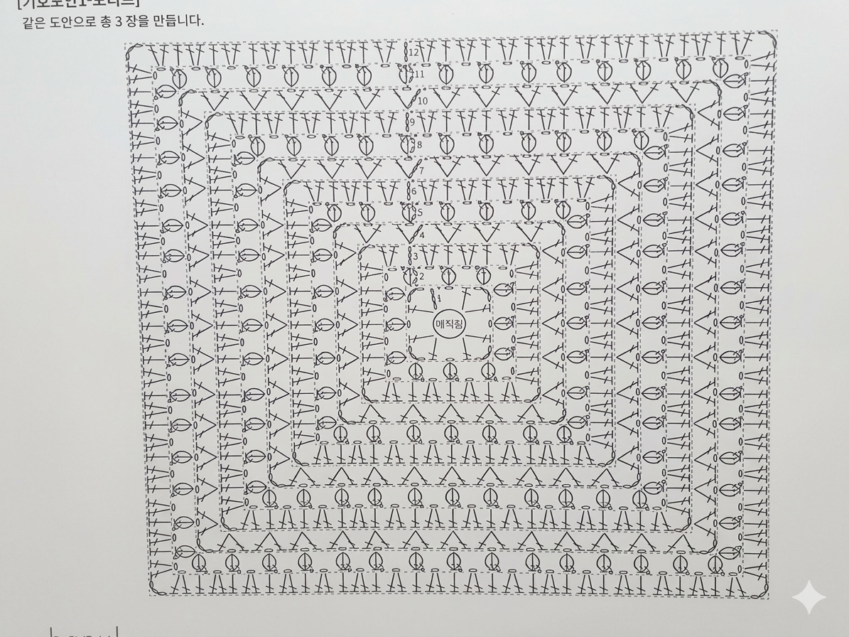 2. 사각 모티브의 크기는 도안대로 하면 12단을 떴을 때 대각선 길이가 45cm 가 된다.