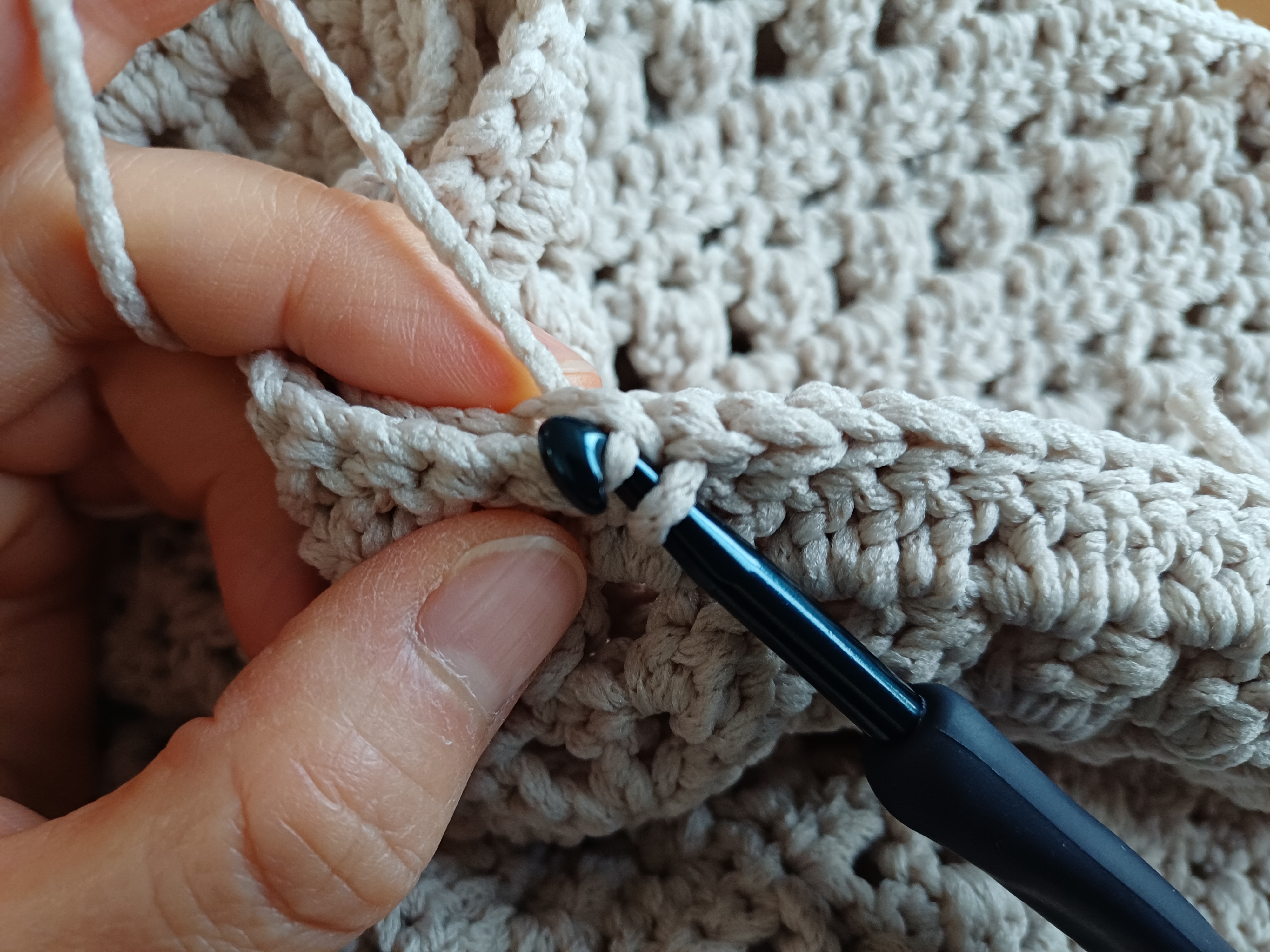 5. 모티브를 연결할 때는 안쪽에서 빽뜨기로 연결한다.
