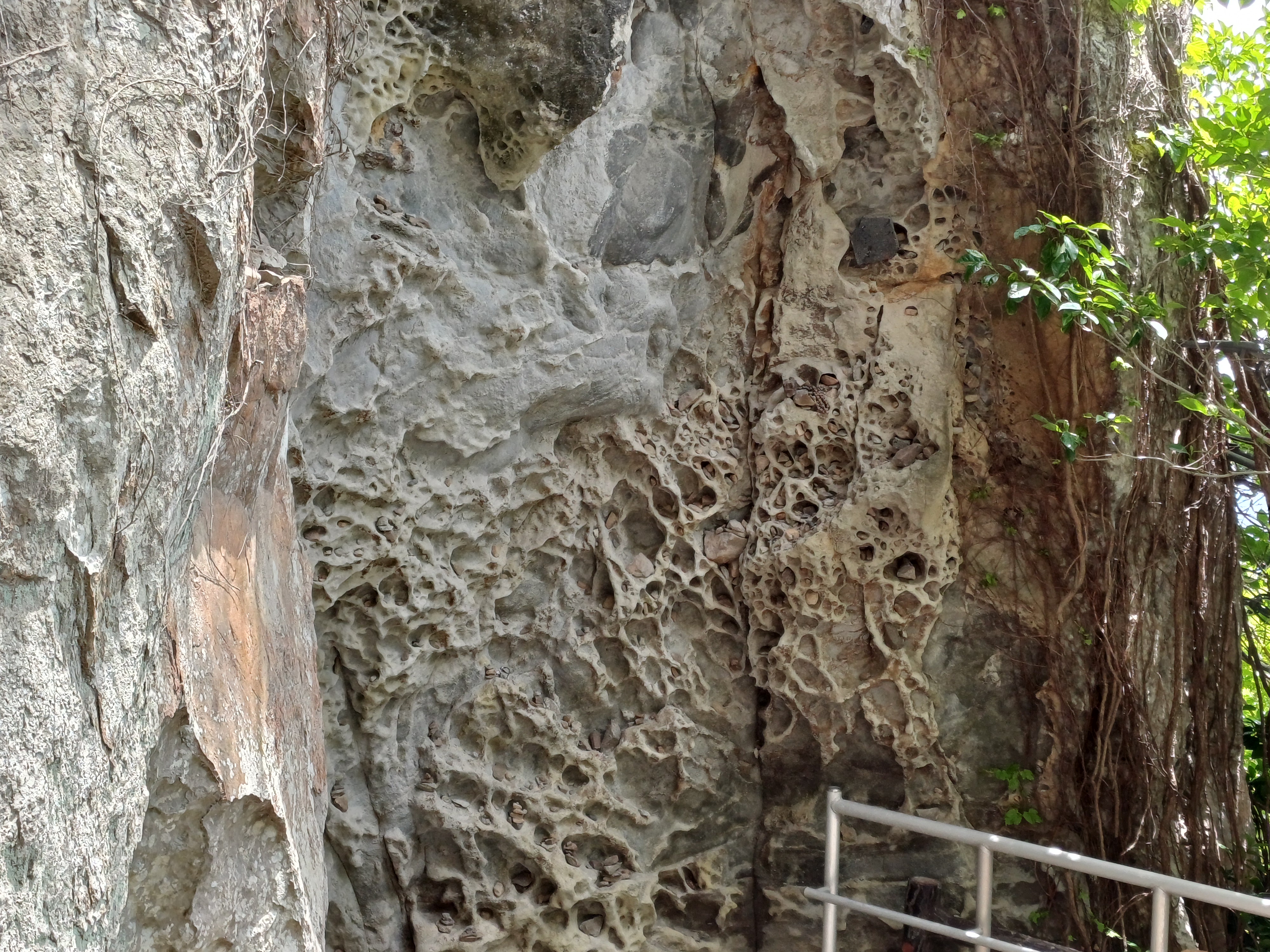 풍화혈은 풍화에 의해 암석에 형성된 구멍이나 동굴을 말합니다 대체로 집단적으로 나타나며 각각의 크기는 수 cm 에서 크게는 수m 에 달한다고 합니다. 특히 작은 풍화혈들이 열을 이루어 반복적으로 나타나는 것을 벌집풍화라고 합니다. 이들의 생성 원인은 명확하게 밝혀지지 않았지만, 일반적으로 물에 노출되기 쉬운 절리나 균일대 혹은 약대를 따라 시작되는 풍화에 의해 생성된다고 알려져 있습니다. 특히 바람이나 파도에 의해 암석에 침투된 염분이 결정화됨으로써 풍화혈이 점진적으로 더 커지는 것으로 알려져 있습니다.