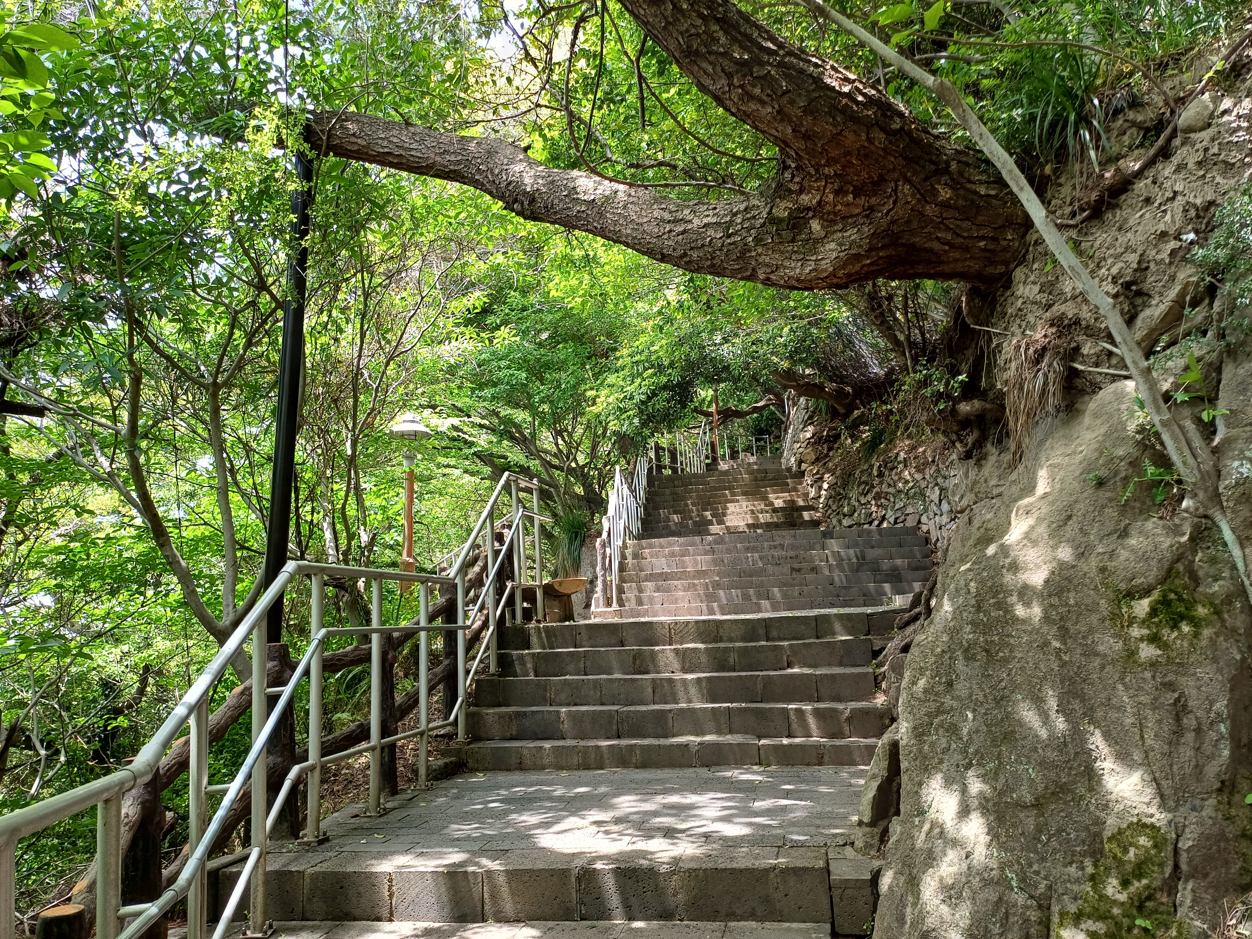 산방산 입구 주차장에서 산방굴사 까지는 20여분 정도 소요됩니다. 잘 정돈된 계단으로 이루어진 길이지만 주차장에서 부터 초입의 사찰까지의 계단 처럼 전체 탐방로의 계단 경사는 가파른 편입니다.